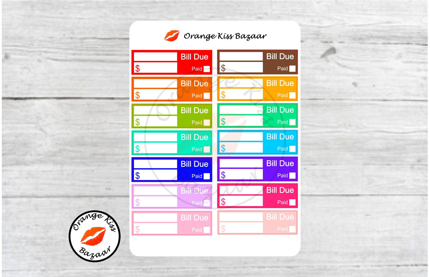 These BIll Due stickers will brighten up your planner and help you keep track of you of when your Bills are due. These stickers let you label which bills are due, how much is due and to tick it off once its due.